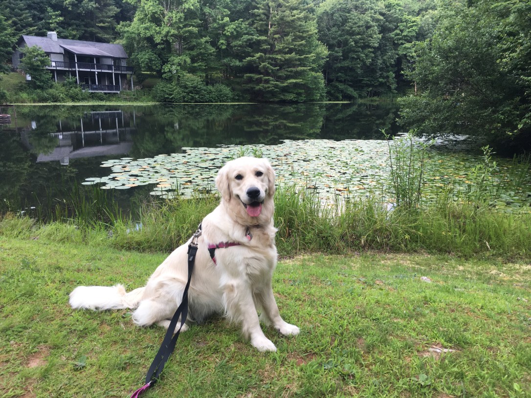 English Cream Golden Retrievers, English Creme Golden RetrieversPuppies love pretty places🐸 July 10, 2021 moonlitmeadowsofthesouth Pond walk with Gemma, Lilly, and Leia🐸🐸🐸