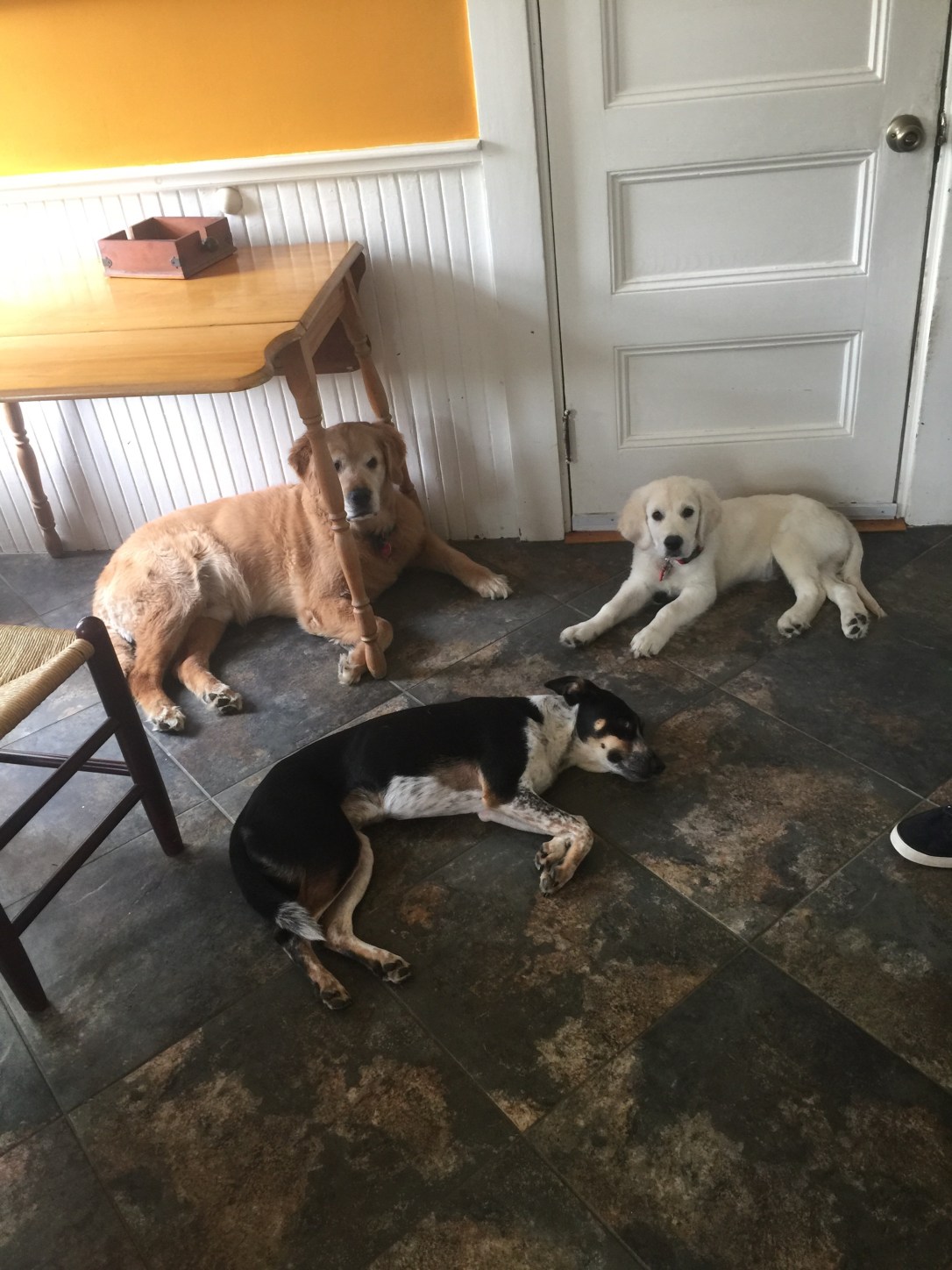 Greetings from Theo and friends! Golden retriever puppies having fun !