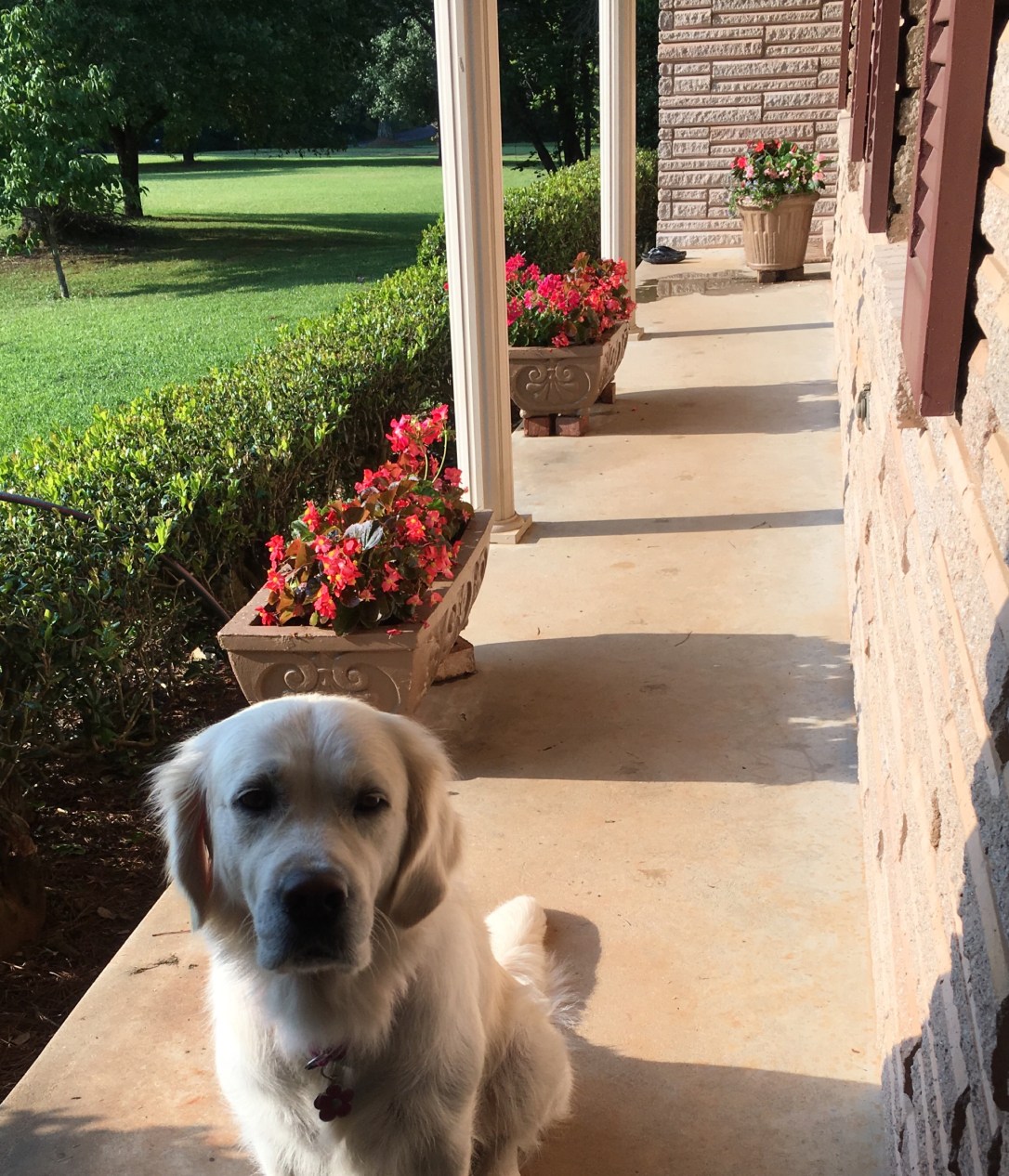 Lilly guarding the porch while two babies nap inside
