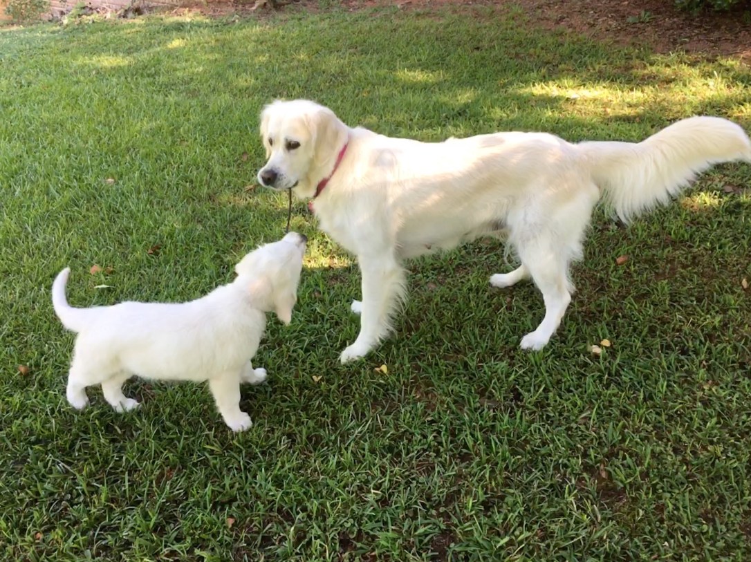 Sharing a twig! Mama and daughter play together!