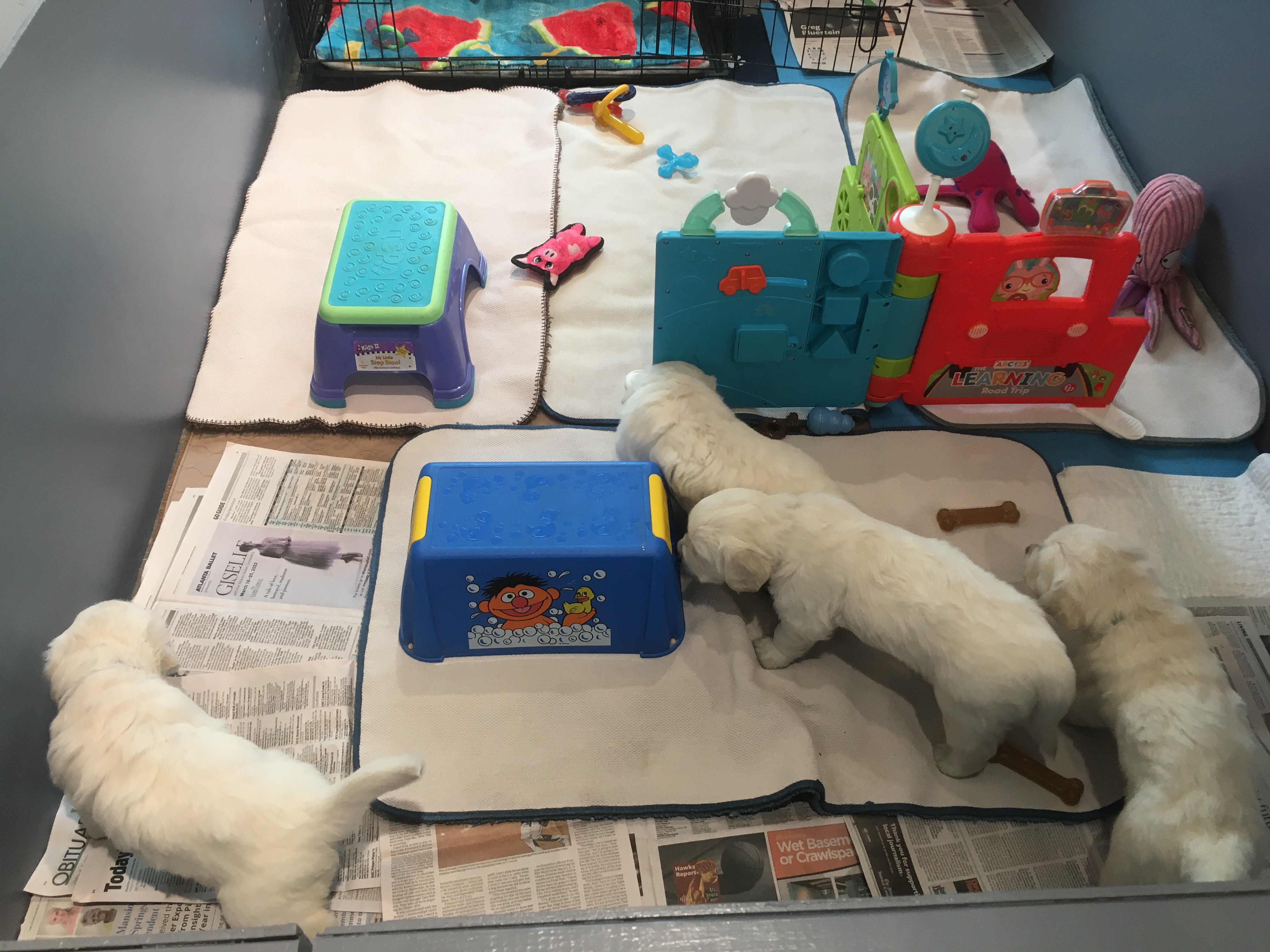 No more baby whelp box for us! We need space to play!