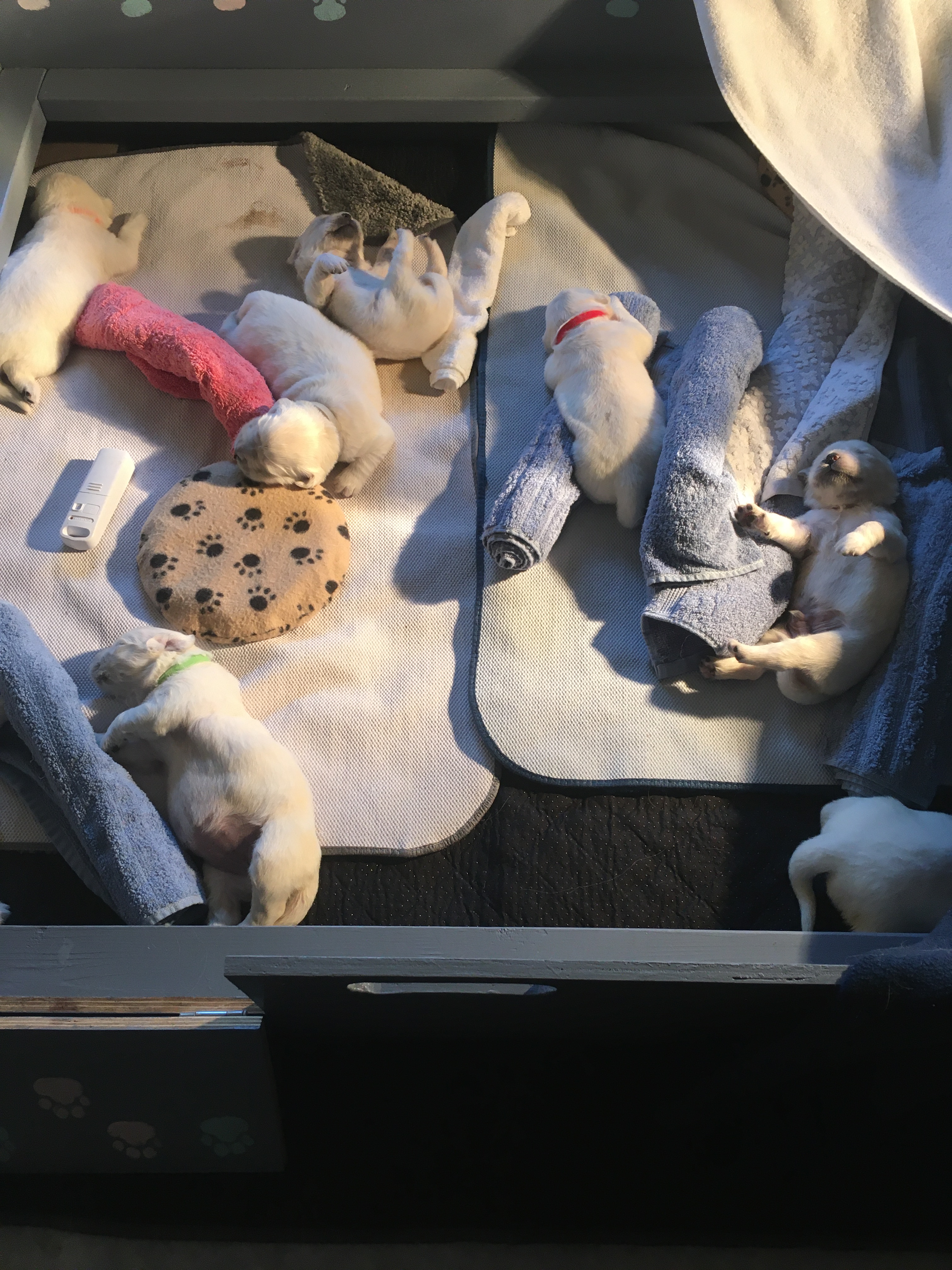These puppies are beautiful babies: super sweet, smart, and possess great temperaments! We look forward to posting lots of photos of these little cuties as they grow! Thank you to their dam Int. Natl. Jr Ch. Gemma Sparkling Sapphire of the Moonlit Meadow CGC, RI, TKN, CCA and sire Int. Ch. Blue Moon of the Morning Valley!