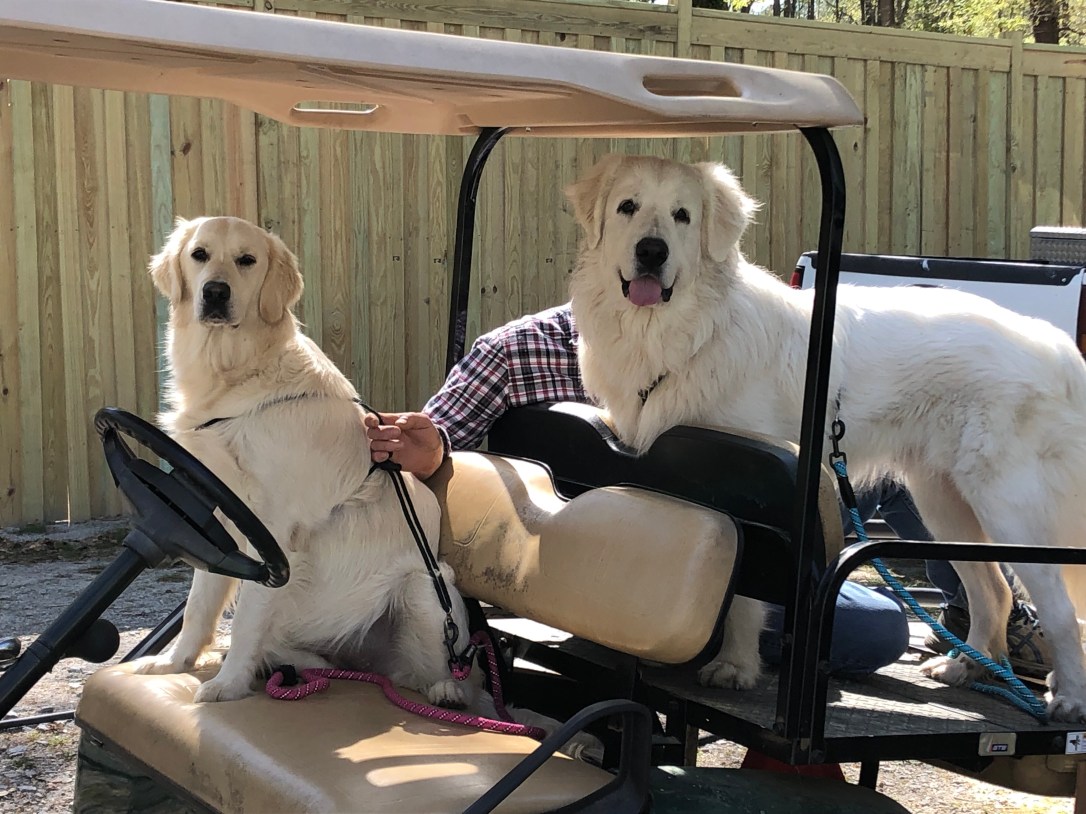 English Golden Retriever PuppiesSpring Days! April 4, 2019April 4, 2019 moonlitmeadowsofthesouth Annabelle with her Great Pyrannese brother take a spin