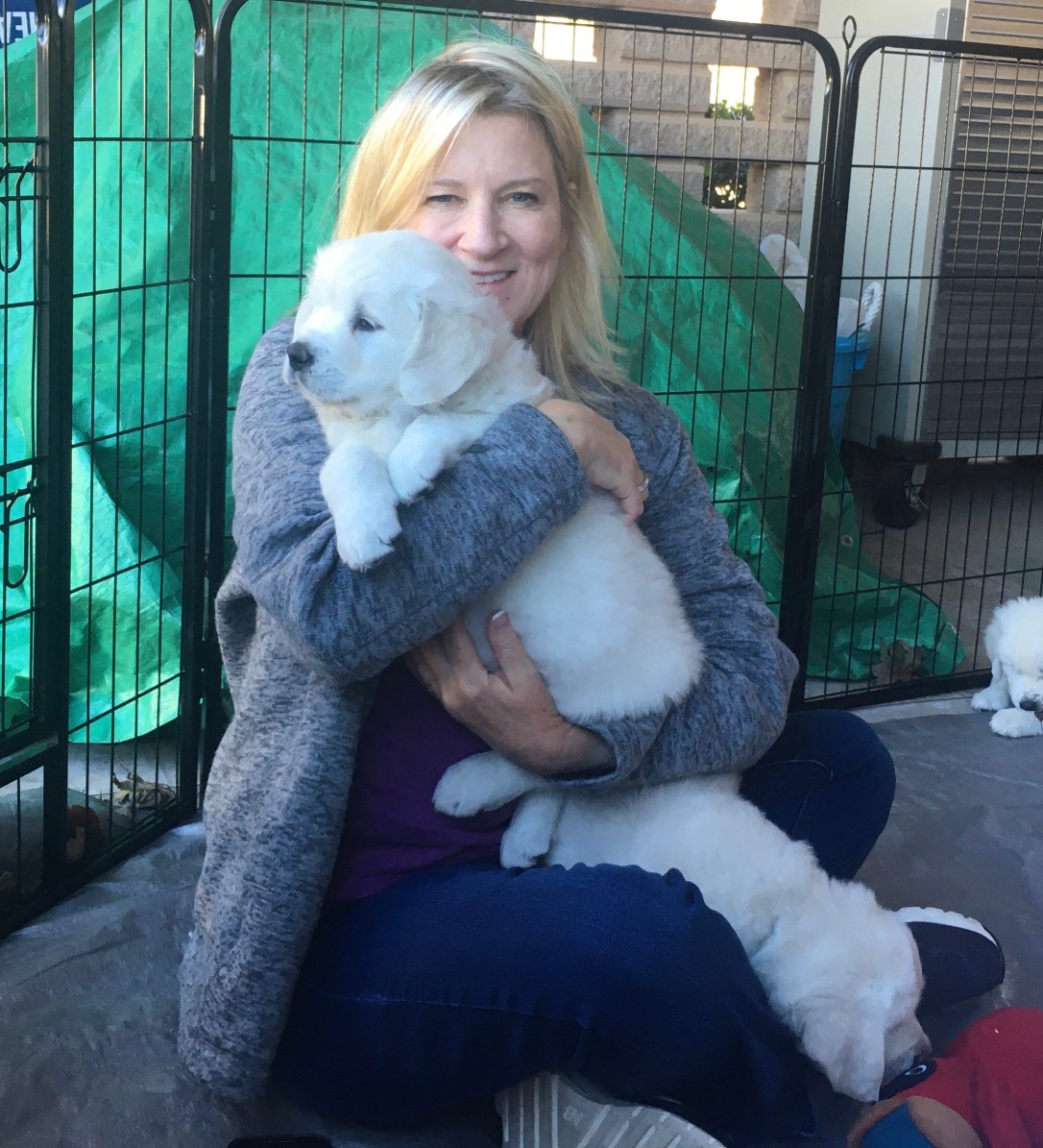 Well, we’ve been outside already two times! Lots of potting going on outside as well as running and playing, investigating nature! Still working on newspaper training inside. Six weeks old tomorrow!