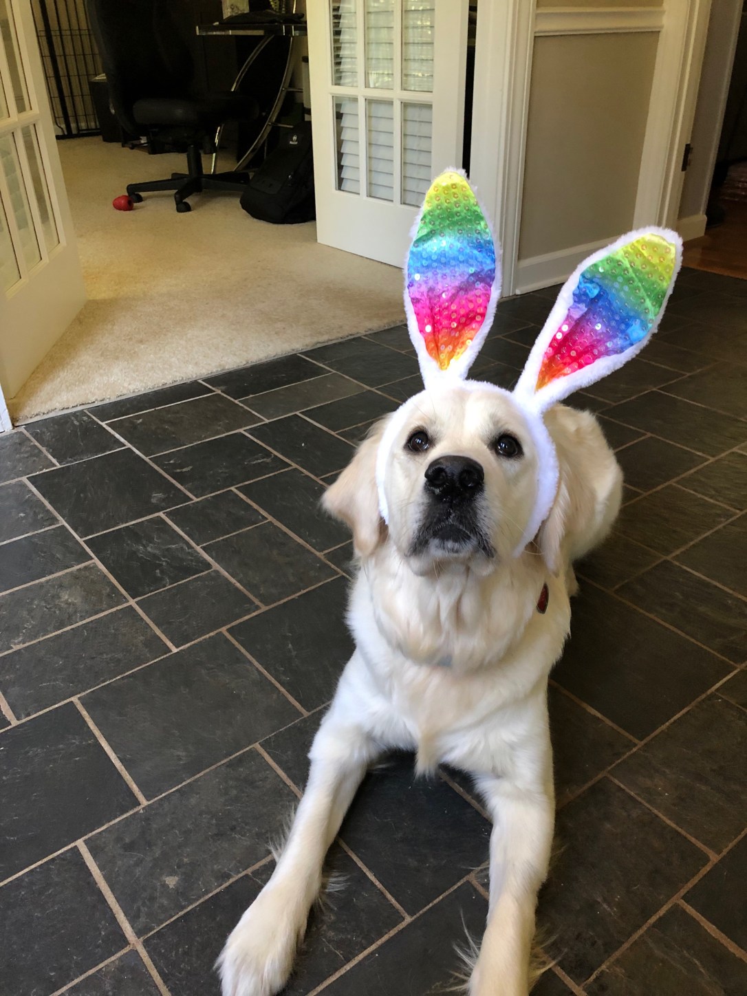 English Golden Retriever PuppiesHappy Easter!! April 21, 2019 moonlitmeadowsofthesouth lovely Luna the bunny rabbit!